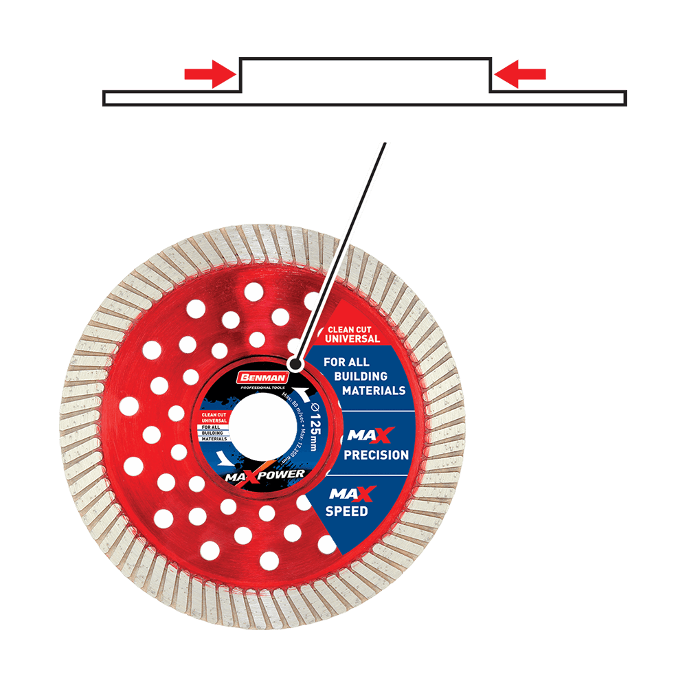 Διαμαντόδισκος Clean Cut Universal Maxpower Benman. Κατάλληλος για σκληρά πετρώματα, μπετό, γρανίτη, οικοδομικά υλικά. Υψηλή ταχύτητα κοπής. Απόλυτη ακρίβεια στη κοπή. Για χρήση σε στεγνή ή υγρή επιφάνεια. Αερόψυκτος.