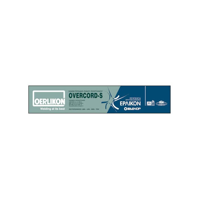 Ηλεκτρόδιο Oerlikon (Έρλικον) Overcord-S. Ηλεκτρόδιο τύπου ρουτιλίου με παχιά επένδυση. Ηλεκτρόδιο εύκολης χρήσης σε AC/DC. Ιδανικό για μικρές κολλήσεις και μεταλλικές κατασκευές από λεπτά ελάσματα.