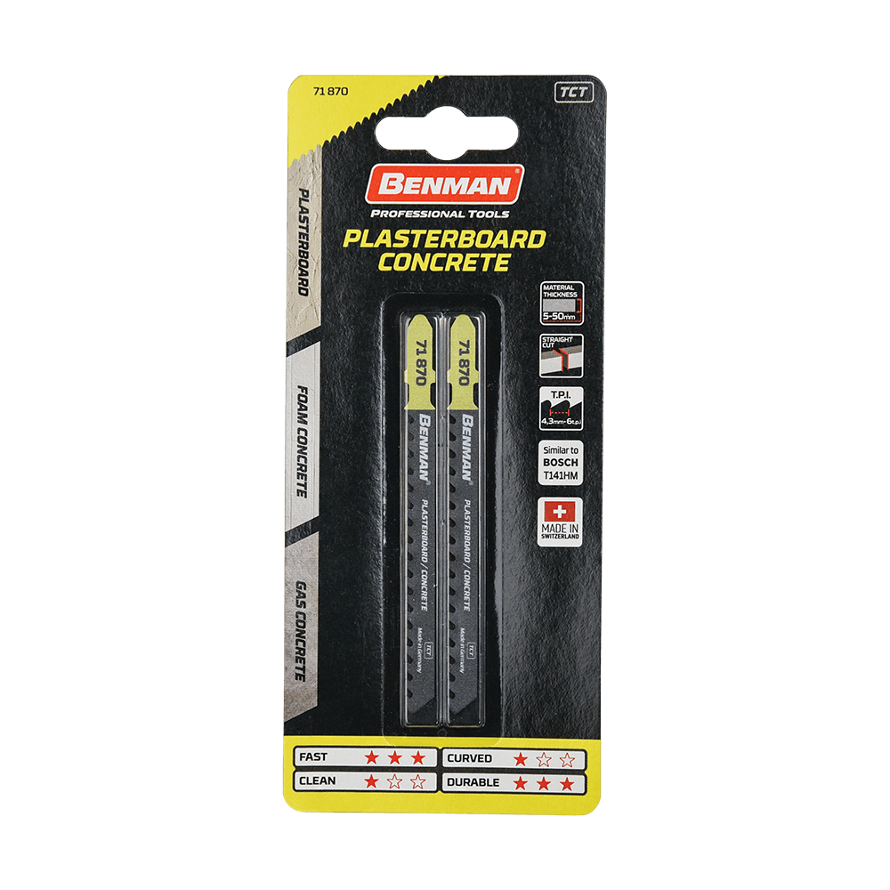Σετ πριονόλαμες Τ141HM για πλαστικό Benman (5 τεμ). Τύπος T141 HM, μήκος 100 mm, πλάτος 7.8 mm, πάχος 1.3 mm. Με δόντια από καρβίδιο, Ελβετίας.