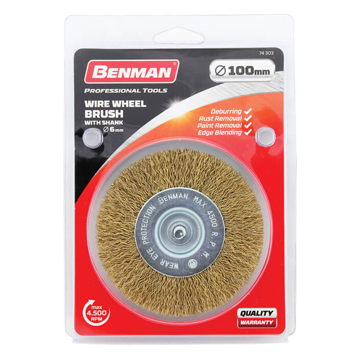 Συρματόβουρτσα στρογγυλή με αξονάκι Benman Ø100 mm