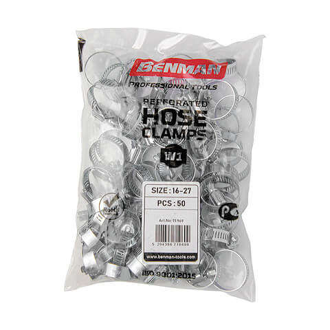 Σφιγκτήρες γενικής χρήσης W1 Benman με πιστοποίηση ποιότητας ISO 14001: 2015, ISO 9001: 2015 και IATF 16949: 2016. Το στεφάνι, η βίδα και ο θάλαμος βίδας είναι γαλβανιζέ και διαθέτουν κυρτές άκρες στη ταινία ασφαλείας που εμποδίζουν τη βλάβη του υλικού σύσφιξης. Είναι ιδανικοί για αγροτικές εργασίες, ορυχεία καθώς και για εφαρμογή που απαιτείται αντοχή στην υψηλή πίεση όπως σωλήνες, λάστιχα και κολάρα.