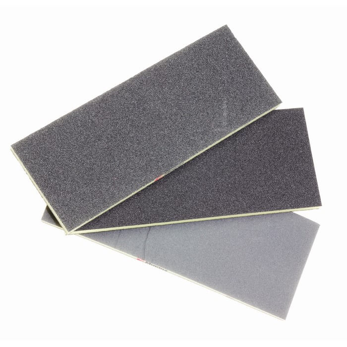 Σφουγγάρι λειαντικό τριβείου δύο πλευρών Morris. Σε κοκκώσεις 60 (κίτρινο, μεσαίο), 100 (πράσινο, ψιλό) και 220 (κόκκινο, πολύ ψιλό). Διαστάσεις 28.4 x 11.3 x 1.2 cm. Αγγλίας.