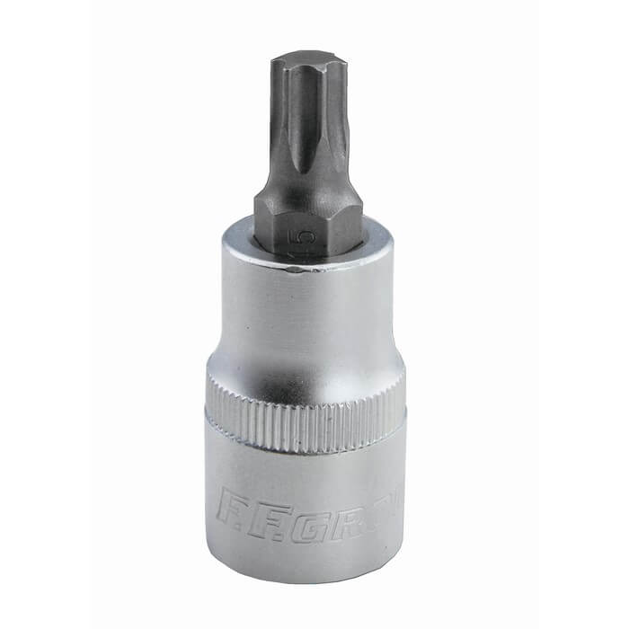 Καρυδάκι για βίδες τορξ (torx) 1/2'' DIN 3120 FF Group. Από υψηλής ποιότητας χρωμιοβαναδιούχο χάλυβα (CrV).