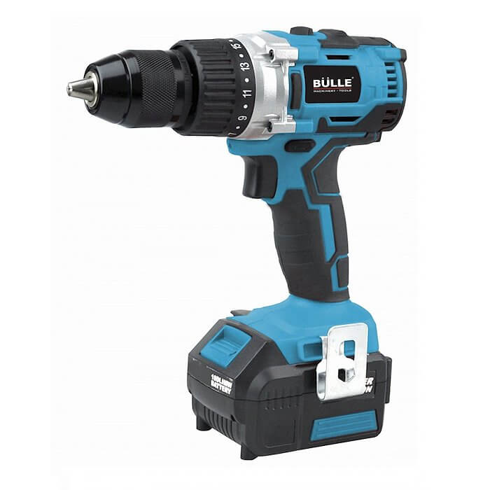 Κρουστικό δραπανοκατσάβιδο Bülle 63435 brushless (χωρίς ψύκτρες) με δύο μπαταρίες λιθίου 4.0 Ah. Συνοδεύεται από βαλιτσάκι μεταφοράς και 13 εξαρτήματα.
