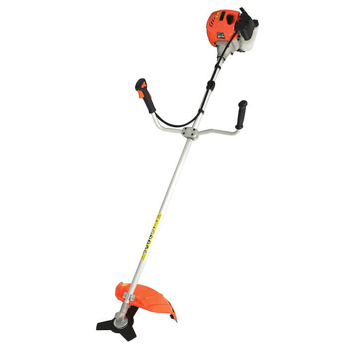 Βενζινοκίνητο θαμνοκοπτικό Kraft 691023. Στιβαρός άξονας Ø28 mm. Πρακτική ασύμμετρη χειρολαβή "τιμόνι ποδηλάτου". Περιλαμβάνει τρίφτερο δίσκο κοπής Ø 255 x 1.6 mm, κεφαλή μεσινέζας με νήμα κοπής, ιμάντα ανάρτησης 4 σημείων, κλειδιά συναρμολόγησης - συντήρησης, δοχείο ανάμιξης καυσίμου - λαδιού.