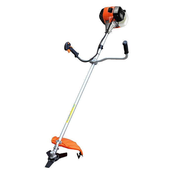 Βενζινοκίνητο θαμνοκοπτικό Kraft 691058. Στιβαρός άξονας Ø28 mm. Πρακτική ασύμμετρη χειρολαβή "τιμόνι ποδηλάτου". Περιλαμβάνει τρίφτερο δίσκο κοπής Ø 255 x 1.6 mm, κεφαλή μεσινέζας με νήμα κοπής, ιμάντα ανάρτησης 2 σημείων, κλειδιά συναρμολόγησης - συντήρησης, δοχείο ανάμιξης καυσίμου - λαδιού.