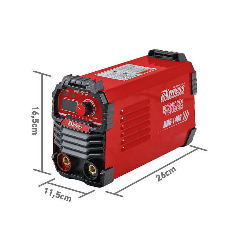 Ηλεκτροσυγκόλληση Express Inverter ΜΜΑ 140Α τεχνολογίας IGBT με υψηλό δείκτη Value For Money και πιστοποιημένες αποδόσεις σύμφωνα με τα ευρωπαϊκά πρότυπα EN 60974-1. Συνοδεύεται με τσιμπίδα ηλεκτροδίου με καλώδιο 3m, σώμα γείωσης με καλώδιο 3m, ιμάντα ανάρτησης, μάσκα και βούρτσα καθαρισμού.