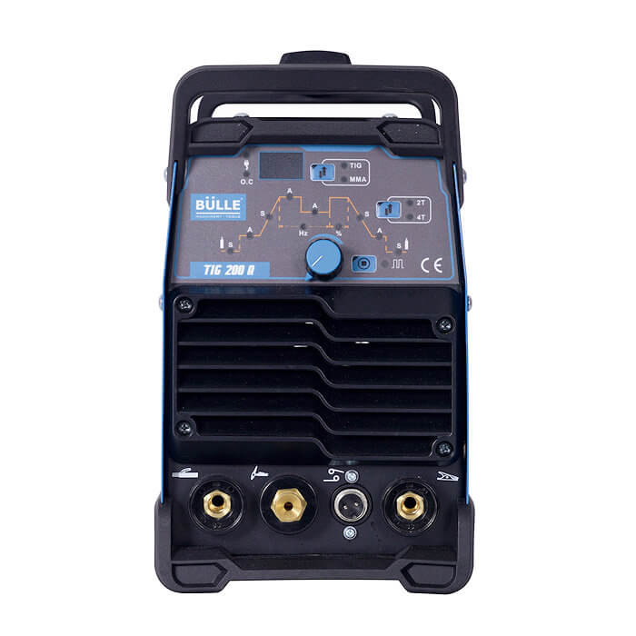 Ηλεκτροσυγκόλληση Bülle TIG 200A. Επαγγελματική ηλεκτροσυγκόλληση TIG & MMA. Με ψηφιακή οθόνη, τεχνολογία HF έναυσης τόξου, λειτουργία παλμών, δυνατότητα ρύθμισης 2Τ/4Τ, down slope και post flow. Διαθέτει λειτουργία παλμών για τέλεια συγκόλληση ακόμη και στα πιο λεπτά μέταλλα. Στιβαρή κατασκευή, σύγχρονος σχεδιασμός. Συνοδεύεται με: τσιμπίδα TIG 4m, τσιμπίδα ηλεκτροδίου 2 m και σώμα γείωσης 3 m. Αποδόσεις σύμφωνα με το Ευρωπαϊκό πρότυπο ΕΝ 60974-1 και EN 60974-10.