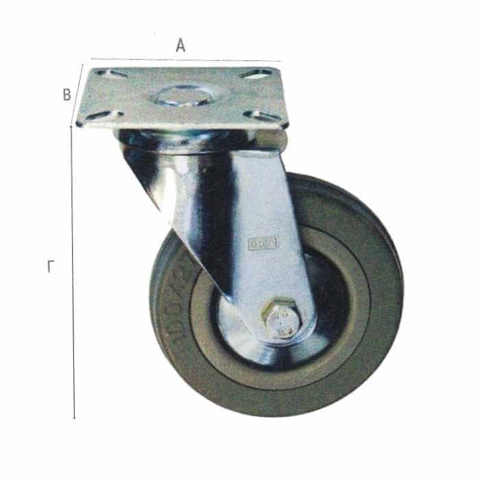 Διάμετρος ρόδας Ø100 mm, Α = 7.6 cm, Β = 7.6 cm, Γ = 13.4 cm. Αντοχή 80 kg ανά ρόδα.