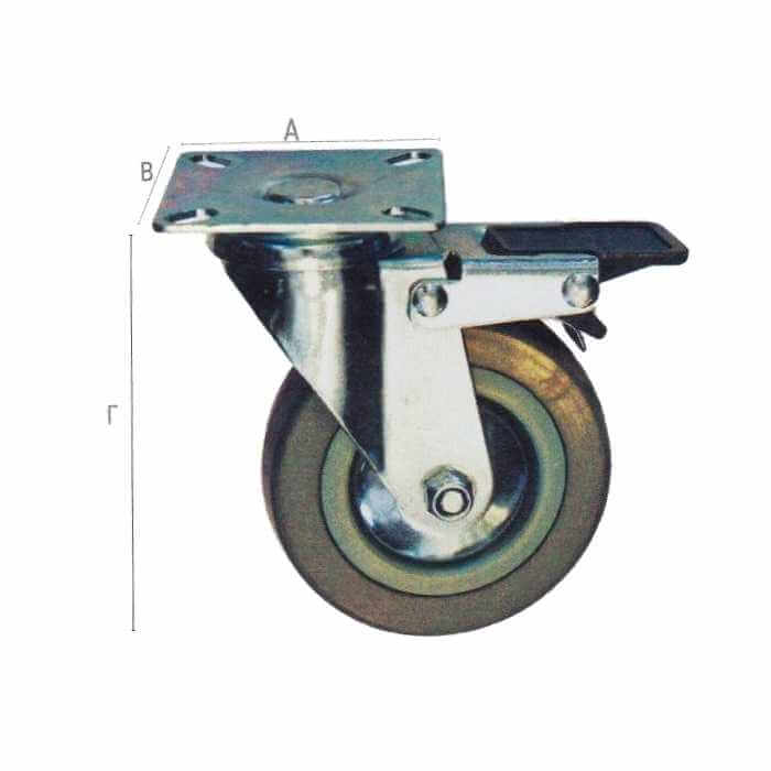 Ρόδα γκρι περιστρεφόμενη με φρένο 50 mm