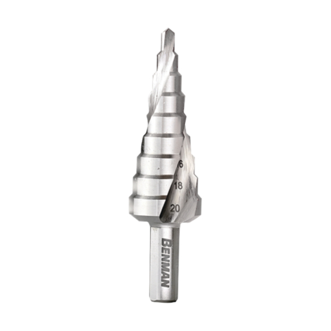 Τρυπάνια Benman HSS M2 κλιμακωτά μετρικά σπιράλ για άνοιγμα μεγάλων οπών σε διάφορες διαμέτρους. Η σπειρωειδής ελίκωση απομακρύνει εύκολα τα γρέζια. Από ταχυχάλυβα (HSS) για μεγάλη διάρκεια ζωής.