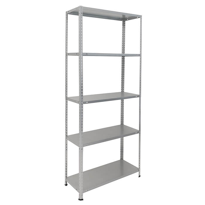 Μεταλλική ραφιέρα Bülle 610414. Γαλβανιζέ, με 5 ράφια και μέγιστο βάρος (ομοιόμορφα κατανεμημένο) 50 kg/ράφι. Διαστάσεις: 75 x 30 x 170 cm. Διαστάσεις συσκευασίας: 85 x 32 x 4 cm. Μικτό βάρος: 7.1 kg.