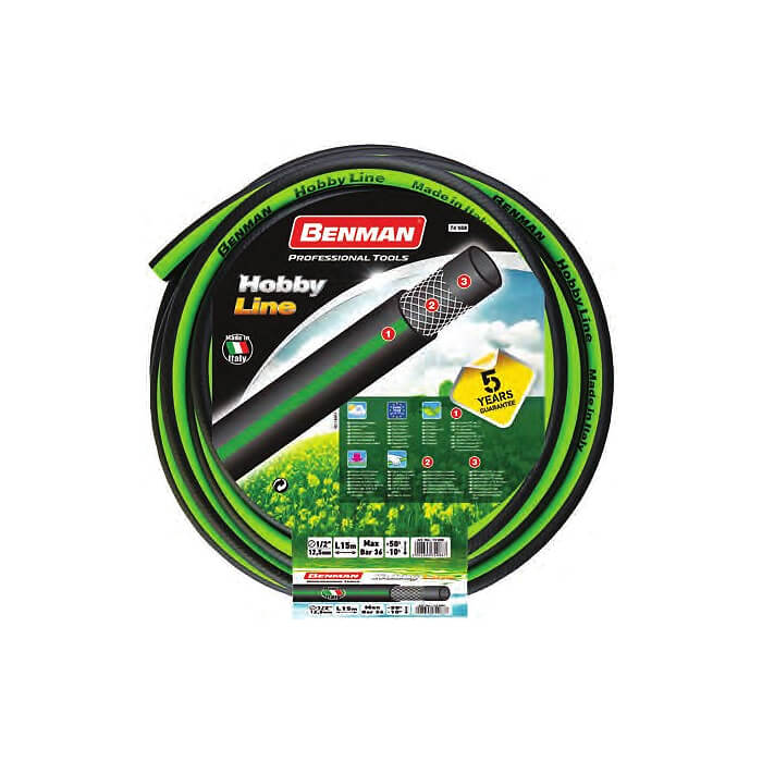 Λάστιχο ποτίσματος HobbyLine Benman. Ιταλίας. Με επίστρωση 3 υλικών. Σύμφωνο με τον κανονισμό REACH, SVHC Free (<0.1%).