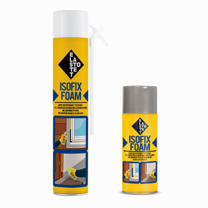 Αφρός πολυουρεθάνης Isofix χειρός Elastotet. ISOFIX Αφρός πολυουρεθάνης χειρός ή πιστολιού για πλήρωση κενών, ρωγμών και οπών. Έχει εξαιρετική πρόσφυση σε όλα τα υποστρώματα εκτός από πολυαιθυλένιο, πολυπροπυλένιο και τεφλόν. Είναι ανθεκτικός στο νερό και τη γήρανση αλλά ευαίσθητος στην ακτινοβολία UV. Προσφέρει εξαιρετική μόνωση. Ελεύθερη διόγκωση μέχρι 40 λίτρα ανά φιάλη. Μετά την σκλήρυνση δεν συρρικνώνεται.