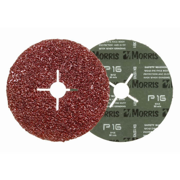 Υψηλής ποιότητας δίσκοι φίμπερ aluminum oxide (κορούνδιο) Morris. Κατασκευασμένοι από χοντρό φίμπερ, με άριστης ποιότητας σμυρίδι καθώς και φαινολική ρητινική κόλλα για μεγάλη αντοχή και γρήγορη λείανση. Κατάλληλοι για μέταλλο, ξύλο και μπετό. Σε κόκκωση από 16 (χοντρό) ως 150 (ψιλό).