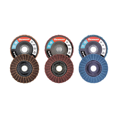 Δίσκος φτερωτός Non Woven Benman με μεγάλη διάρκεια ζωής, ευελιξία και αντοχή στη θερμότητα. Συνδυάζει το ξεχόνδρισμα και το φινίρισμα για ακόμα μεγαλύτερη απόδοση. Τα επικαλυπτόμενα φύλλα αυξάνουν την ανθεκτικότητα και το ρυθμό αφαίρεσης υλικού.