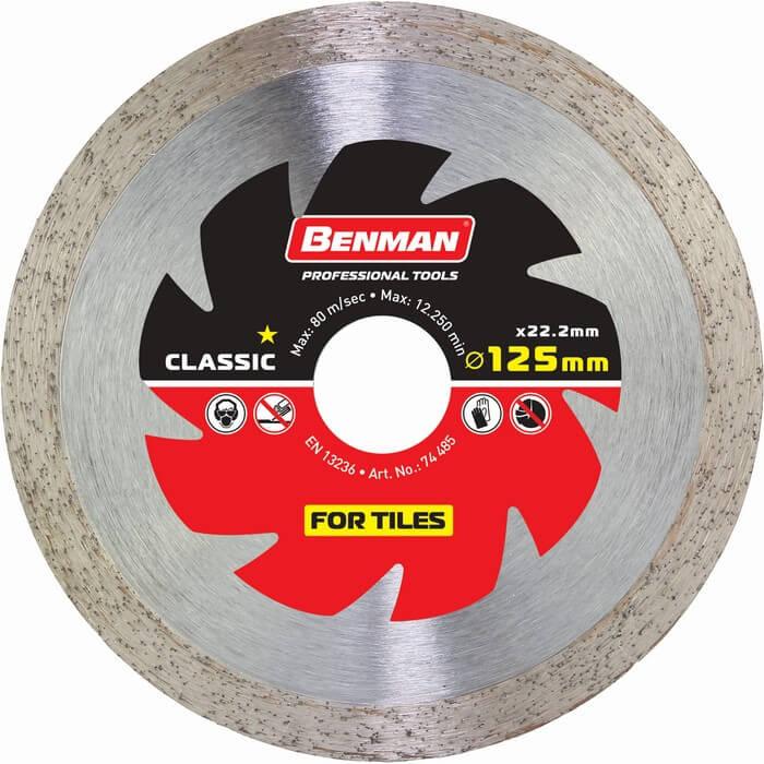 Διαμαντόδισκος πλακιδίων Benman. Κατάλληλος για πλακάκια και πορσελάνη. Για γρήγορη & αξιόπιστη κοπή και χρήση σε στεγνή ή υγρή επιφάνεια.