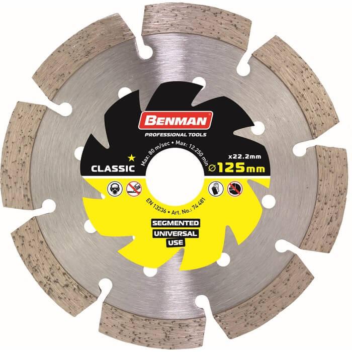 Διαμαντόδισκος Universal Benman. Κατάλληλος για σκληρά πετρώματα, μπετό, οικοδομικά υλικά. Για γρήγορη & αξιόπιστη κοπή και χρήση σε στεγνή ή υγρή επιφάνεια.