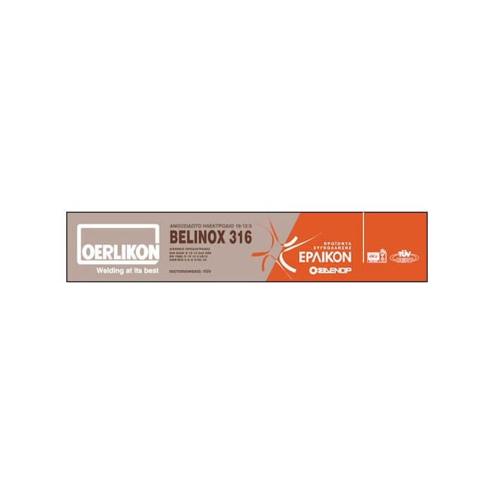 Ηλεκτρόδιο Oerlikon (Έρλικον) Belinox 316. Τύπου ρουτιλίου. Εύκολη χρήση ακόμη και με μικρές μηχανές A.C.