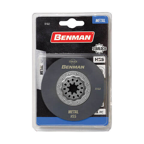 Μασίφ στρογγυλή οδοντωτή πριονόλαμα Starlock Benman H.S.S. με διάμετρο 85 mm, κατάλληλη για κοπές σε λαμαρίνες έως 1 mm, σε ξύλο και πλαστικό. Έχει εξαιρετική ταχύτητα κοπής και είναι ιδανική για καθαρές και λεπτές γραμμές κοπής. Είναι κατάλληλη για εργασίες σε γωνίες και ακμές.