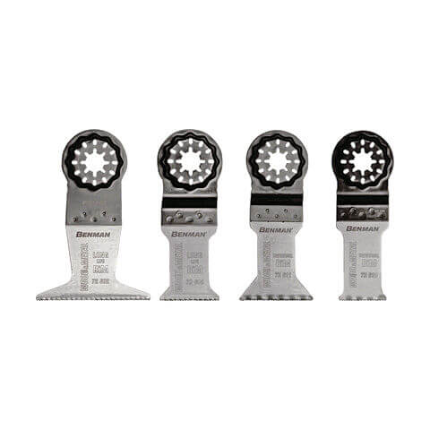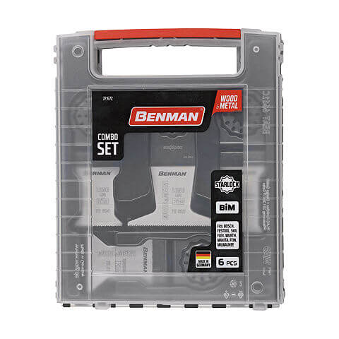 Πριονόλαμες βυθιζόμενες Starlock Benman για ξύλο και μέταλλο σετ 6 τεμαχίων. Το σετ περιλαμβάνει 2 πριονόλαμες 50 mm x 35 mm (010-72604), 2 πριονόλαμες 50 mm x 65 mm (010-72602), 1 πριονόλαμα 55 mm x 28 mm (010-72610), 1 πριονόλαμα 55 mm x 28 mm (010-72610), 1 πριονόλαμα 55 mm x 28 mm (010-72611)