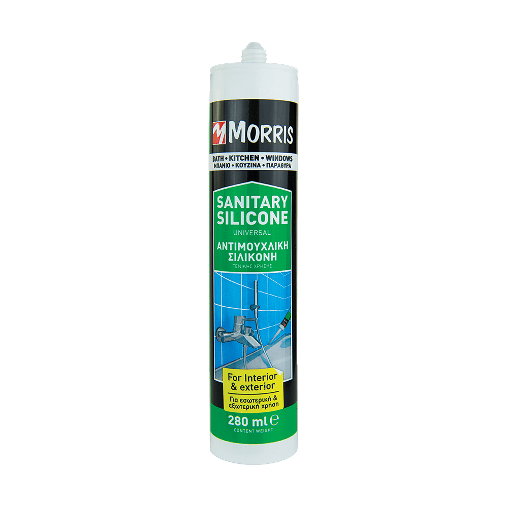 (Professional sanitary silicone sealant for internal-external & general use, Morris).