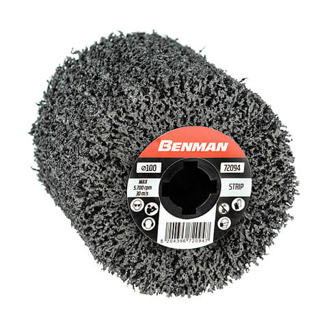 Κύλινδρος λείανσης BENMAN σατινιέρας clean strip 100 x 100 και οπή 19 mm, κατάλληλος για αφαίρεση γρεζιών, για καθαρισμό συγκολλήσεων και εντατική απομάκρυνση σκουριάς και οξείδωσης σε βάθος.