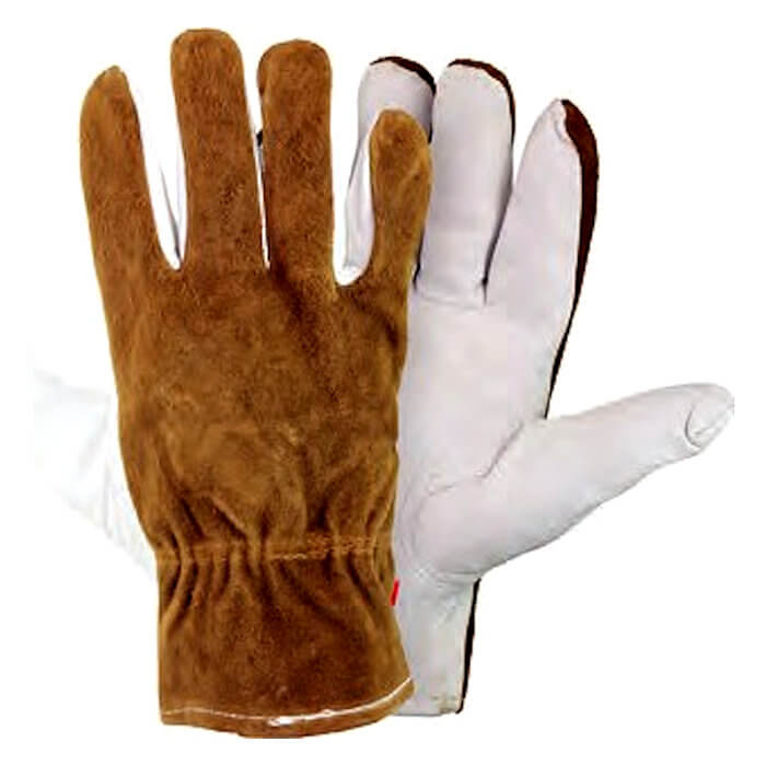 Γάντια δερμάτινα Benman. Παλάμη από φυσικό δέρμα τράγου. Πίσω μέρος γαντιού από κρούτα μόσχου. Ελαφρύ και άνετο. Γενικής χρήσης, καφέ/άσπρο. Μήκος γαντιού 25 cm (10").
