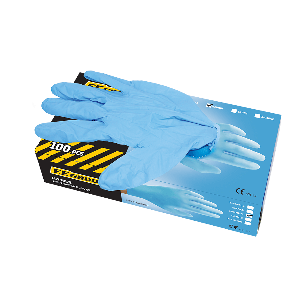 Σετ 100 τεμ γάντια νιτριλίου μιας χρήσης FF Group L