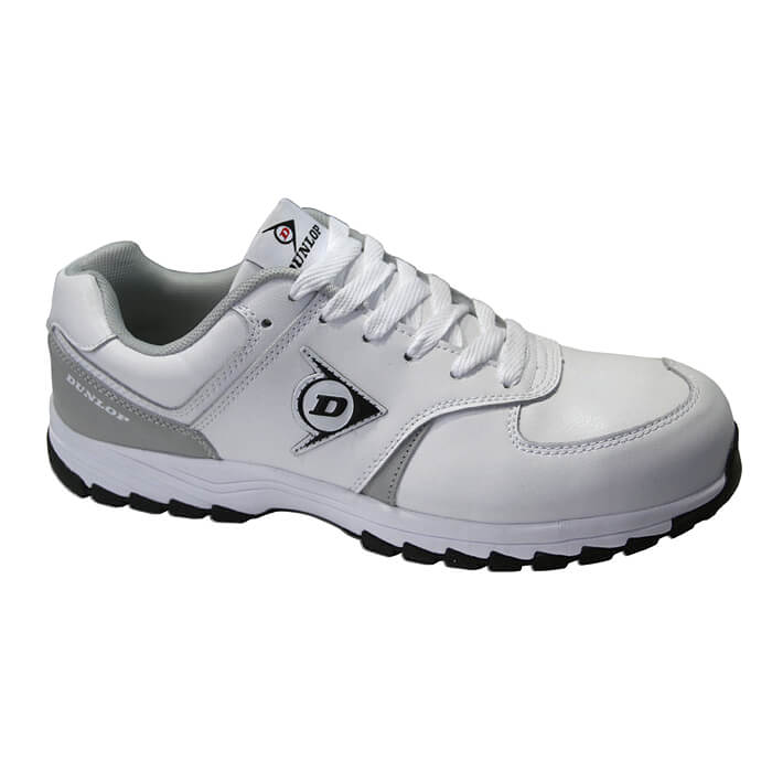 Παπούτσι εργασίας Dunlop Flying Arrow λευκό. Ελαφριά παπούτσια εργασίας με νέο design, full leather. Αδιάβροχα (S3), αντιολισθητικά. Προστατευτικό δαχτύλων από συνθετικό υλικό (composite). Προστασία πέλματος ΗRO. Ελαστική, E.V.A. σόλα.