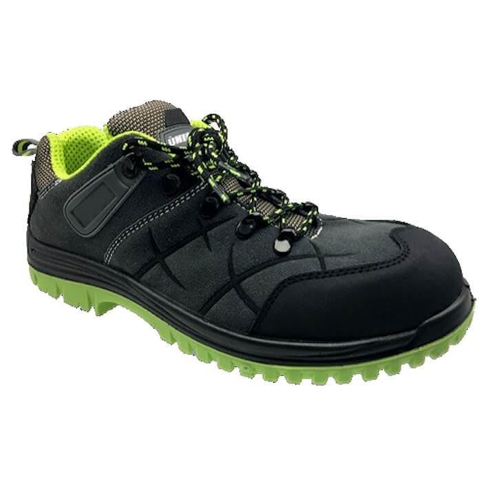 Παπούτσι εργασίας Unimac 710225. Παπούτσια ασφαλείας S1P από δέρμα σουέτ χρώματος γκρι/μαύρο. Αντιολισθητική (SRC) σόλα. Χαλύβδινο προστατευτικό δακτύλων. Προστασία πέλματος με ενδιάμεση αντιδιατρητική σόλα από ελαστικό χάλυβα.