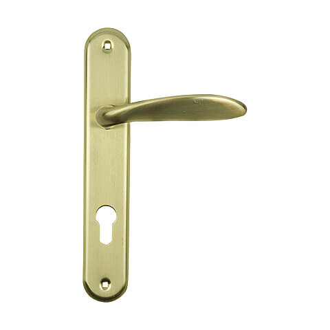 Χειρολαβές οβάλ πλάκας FF Group εξώπορτας χρώματος ορειχάλκινου.