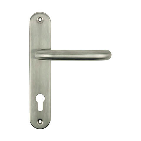 Χειρολαβές οβάλ πλάκας FF Group εξώπορτας σε χρώμα νίκελ.
