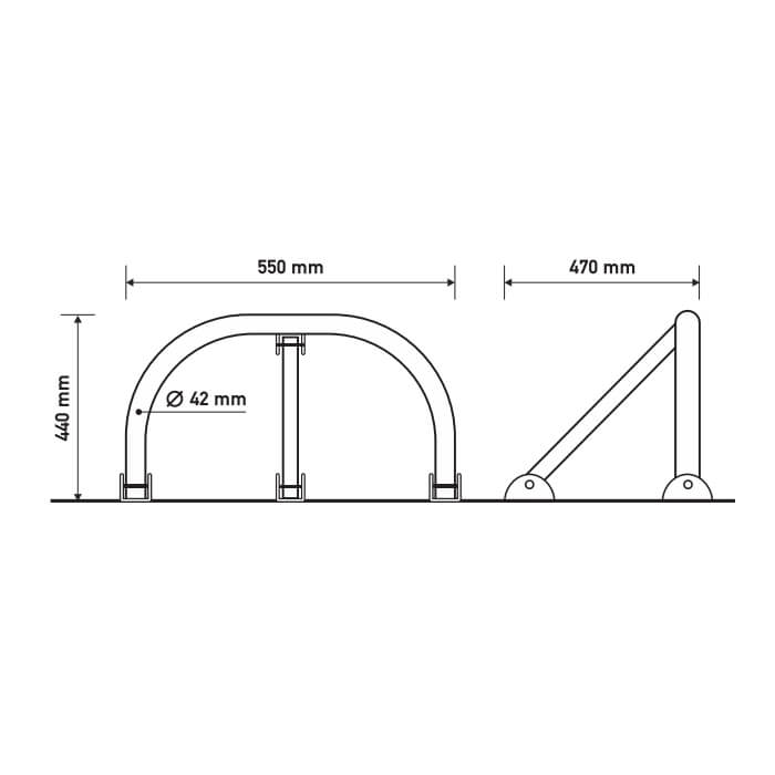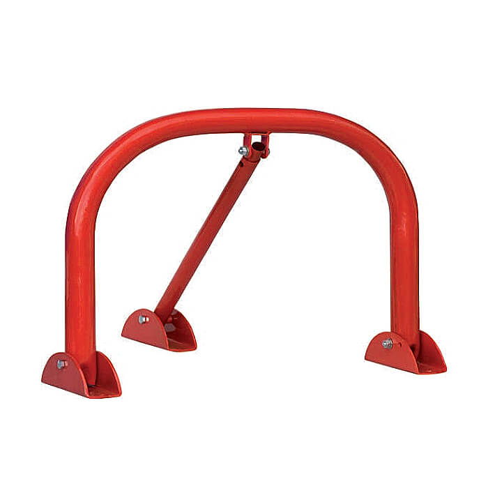 Μπάρα parking U-55. Αναδιπλούμενη μπάρα πάρκινγκ από χαλυβδοσωλήνα Ø42 (ΠxΥ) 55 x 44 cm, βαμμένη κόκκινη με ηλεκτροστατική βαφή. Διατίθεται με extra πόδι στήριξης και υλικά στερέωσης.