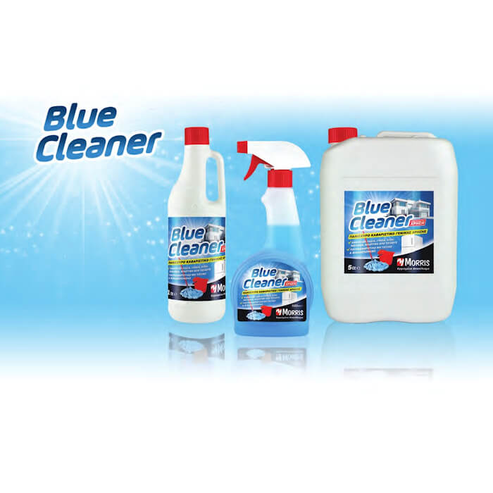 Καθαριστικό γενικής χρήσης Blue Cleaner Morris. Kαθαρίζει λάδια, γράσα, λίπη και άλλες πολλές δύσκολες βρωμιές από τοίχους, μηχανές αυτοκινήτων, χαλιά, είδη υγιεινής, δάπεδα, ψησταριές, τζάκια, ρούχα. Για επαγγελματικούς καθαρισμούς, χρησιμοποιείται από πλυντήρια αυτοκινήτων, από συνεργεία καθαρισμού πολυκατοικιών και από ξενοδοχεία. Ελληνικής παραγωγής.