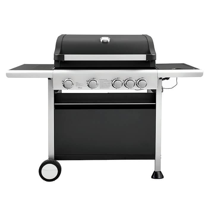- Με 4 καυστήρες από ανοξείδωτο χάλυβα (inox) 3 kW ο καθένας και 1 πλαϊνή εστία 2.5 kW.