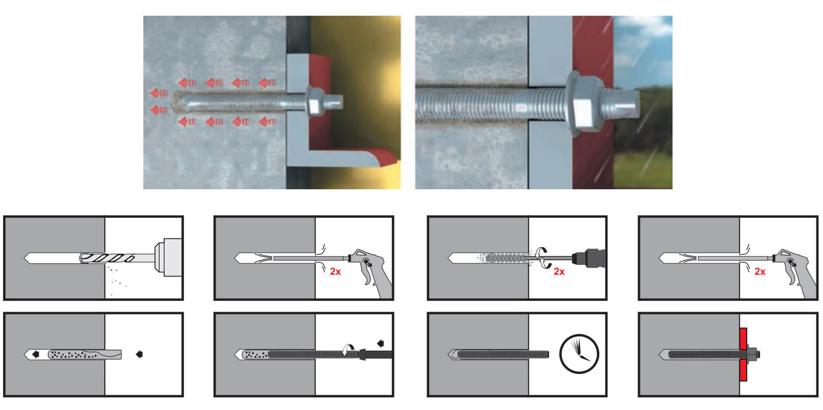 - Ιδανικό για αγκυρώσεις βαρέως τύπου με ελάχιστες αποστάσεις από τα άκρα καθώς και μεταξύ των βυσμάτων.