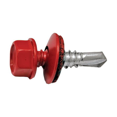 Τρυπανόβιδες FF Group εξάγωνες DIN 7504K γαλβανιζέ CR3+ με κόκκινο κεφάλι. Με ροδέλα στεγανοποίησης EPDM 16 mm και 3 mm τρυπάνι, made in Taiwan.