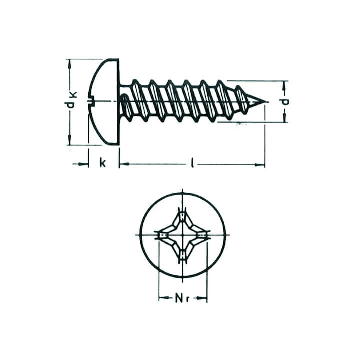 Λαμαρινόβιδες αυτοκοχλιούμενες ψωμάκι σταυρό inox A2, κατά DIN 7981.