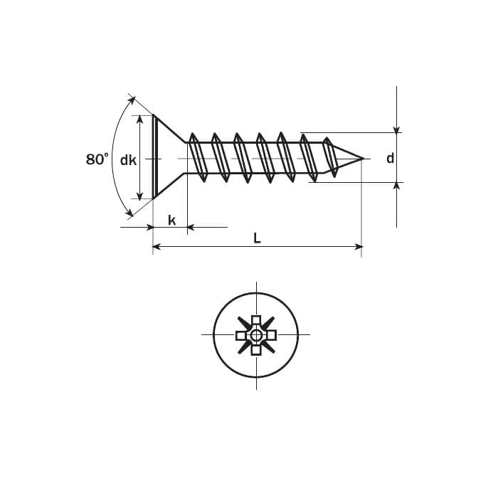 (Chipboard screws DIN 7505-A zinc plated.)