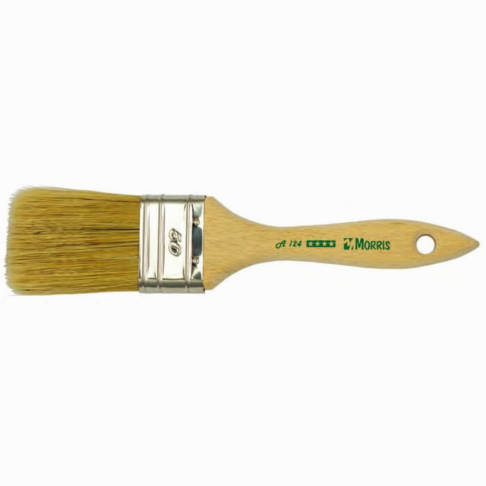 Πινέλο σειρά A-124 Morris. Ημίδιπλο επαγγελματικό πινέλο με Α’ ποιότητας φυσική λευκή τρίχα και αβερνίκωτη ξύλινη λαβή οξιά. Για πλαστικά και ακρυλικά χρώματα.