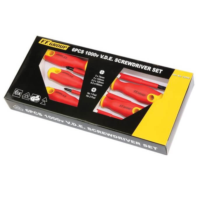 Σετ 6 τεμ κατσαβίδια ηλεκτρολόγων με μόνωση VDE 1000V FF Group. Ίσιο (3 x 75, 4 x 100, 5.5 x 125, 6.5 x 150), PZ (1 x 80, 2 x 100).