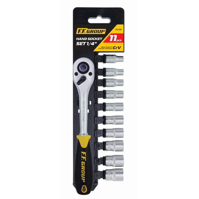 Σετ καστάνια 1/4'' & 10 καρυδάκια FF Group. Εξαιρετικής αντοχής. Καρυδάκια διαστάσεων 5, 5.5, 6, 7, 8, 9, 10, 11, 12, 13 mm.