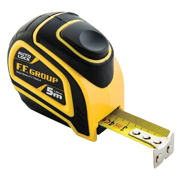 Μέτρο ρολό AutoLock FF Group. Μηχανισμός αυτόματου κλειδώματος (AutoLock) που επιτρέπει στη λάμα να επεκταθεί ομαλά. Ταινία υψηλής ακρίβειας, σύμφωνη με το πρότυπο EEC CLASS II. Με προστατευτικό που απορροφά τους κραδασμούς κατά την επιστροφή της λάμας. Μαγνητικός γάντζος πιασμένος με 3 πριτσίνια για αντοχή που διαρκεί και ευκολία στη χρήση. Λάμα με βαφή νάυλος ανθεκτική στη τριβή.