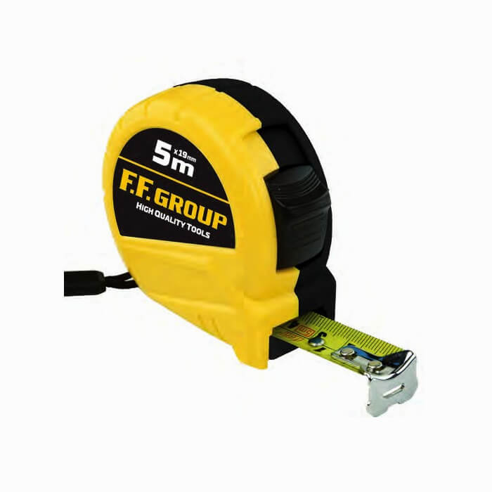 Μέτρο ρολό HobbyLine FF Group 5 m x 19 mm. Ταινία υψηλής ακρίβειας, σύμφωνη με το πρότυπο EEC CLASS II. Με προστατευτικό που απορροφά τους κραδασμούς κατά την επιστροφή της λάμας. Γάντζος πιασμένος με 3 πριτσίνια για μεγάλη αντοχή.