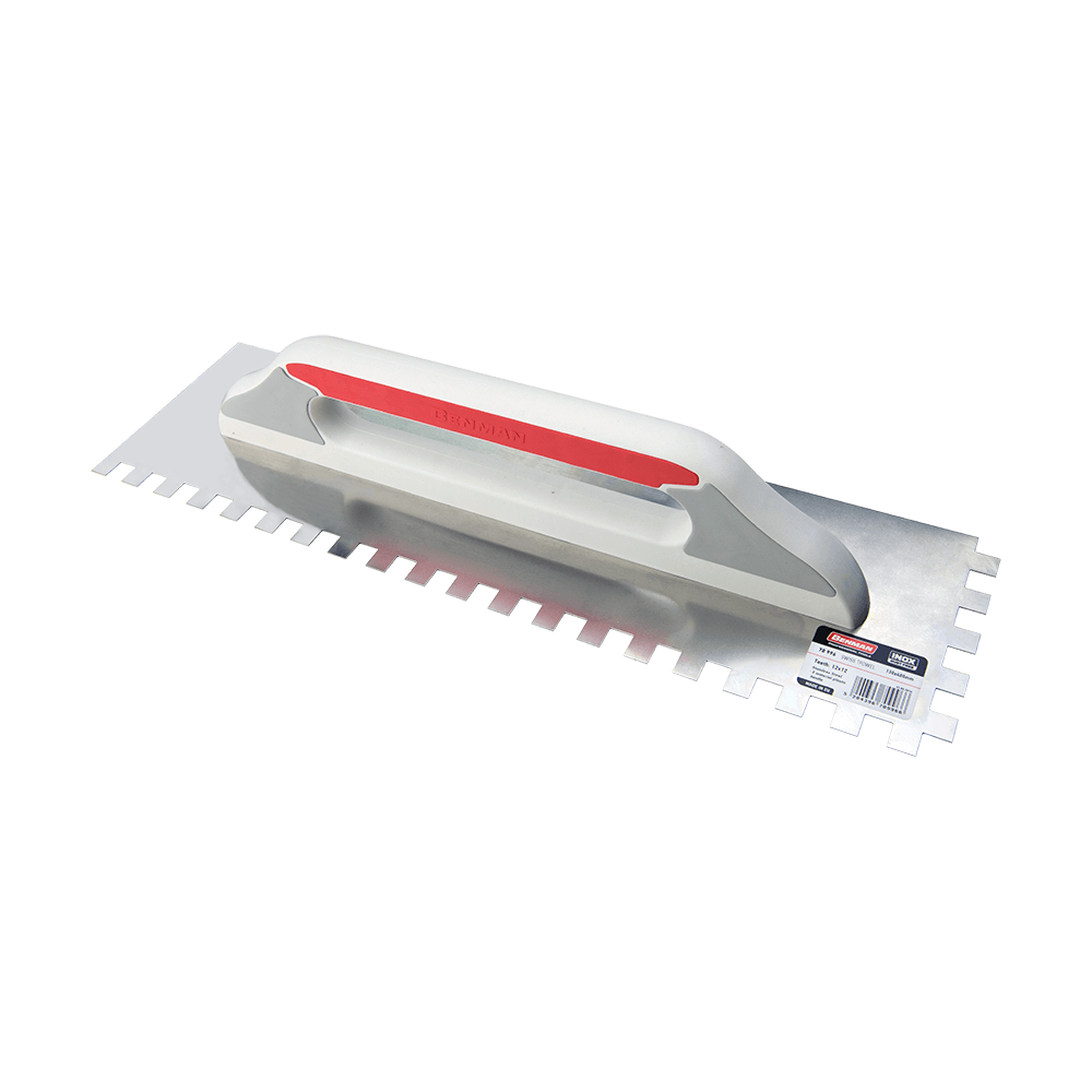 Μυστρί πλακάδων τετράγωνο δόντι με πλαστική λαβή Benman. Διάσταση 130 x 480 mm.