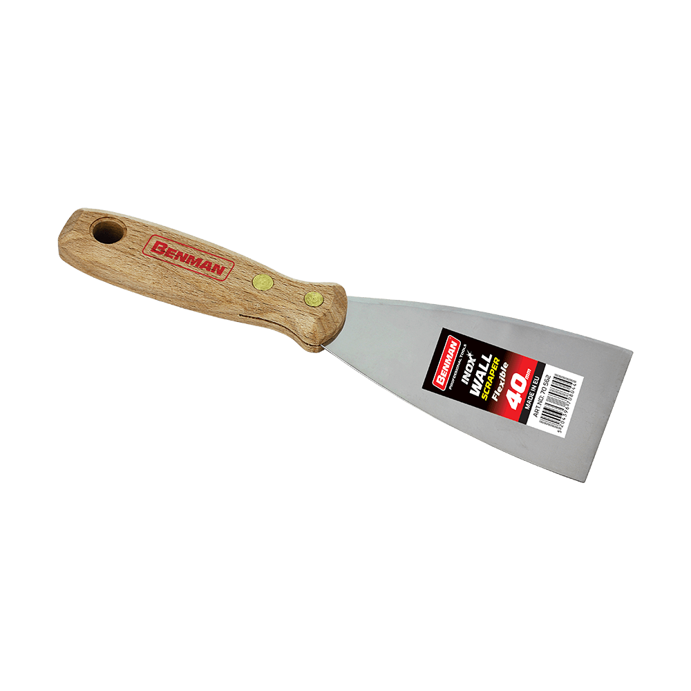 Σπάτουλα στοκαδόρος inox με ξύλινη λαβή Benman 2'' (50 mm)