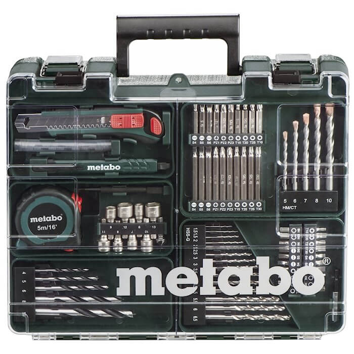 - Κινητό εργαστήριο: πλαστική θήκη μεταφοράς με μεγάλο εύρος εξαρτημάτων για γεωτρήσεις, βίδωμα και περισσότερα.