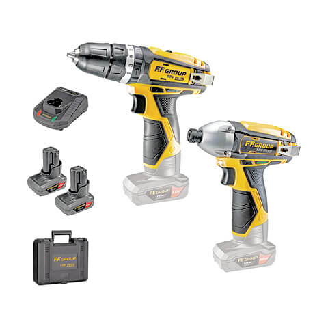 Σετ κρουστικό δραπανοκατσάβιδο και παλμικό κατσαβίδι Μπαταρίας FF Group 12V με 2 μπαταρίες 4.0 Ah. Διαθέτουν LED φως εργασίας και συνοδεύονται από 2 χρόνια εγγύηση. Διατίθενται σε πρακτική βαλίτσα μεταφοράς η οποία περιέχει 2 μπαταρίες 4.0 Ah, 1 ταχυφορτιστή 4.0 A και 2 κλιπ ζώνης.