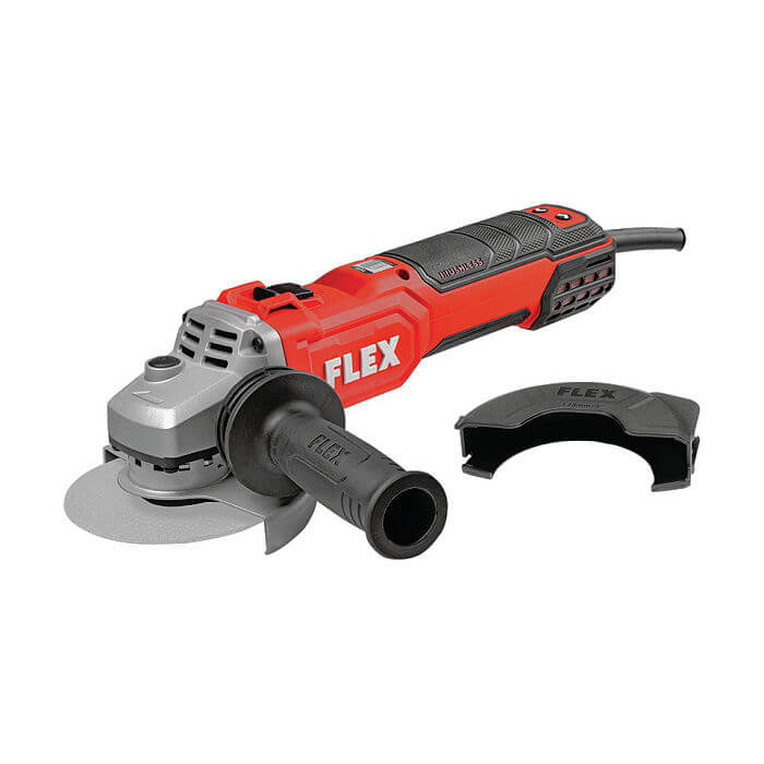 Γωνιακός τροχός Flex LBE 20-11 125-EC. Η συσκευασία περιλαμβάνει βοηθητική λαβή, προφυλακτήρα ασφαλείας, κλειδί τροχού, φλάντζα και παξιμάδι σύσφιξης Μ14.